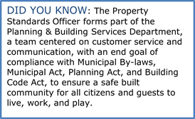 The Property Standards Officer contributes to the success of the Corporation of the City of North Bay by educating the public regarding the Property Standards By-Law as well as investigating and resolving complaints with respect to municipal by-laws and other legislation enforced by the municipality. The Property Standards Officer also implements the City’s Vacant Building By-law and Short-Term Rental license processing and enforcement.