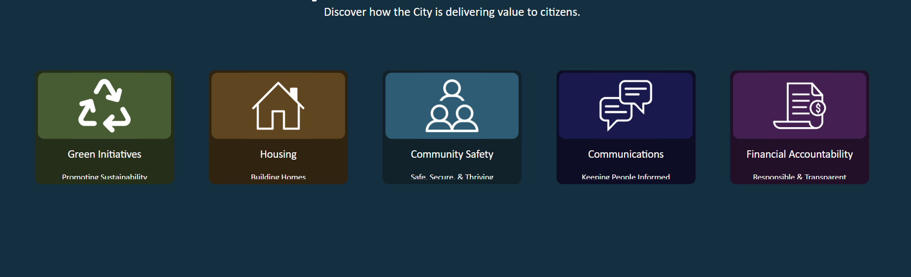 Developed as part of the City’s ongoing implementation of the KPMG Organizational Review, the Municipal Dashboard highlights important indicators that help monitor progress, measure outcomes, and share information about City programs and services.