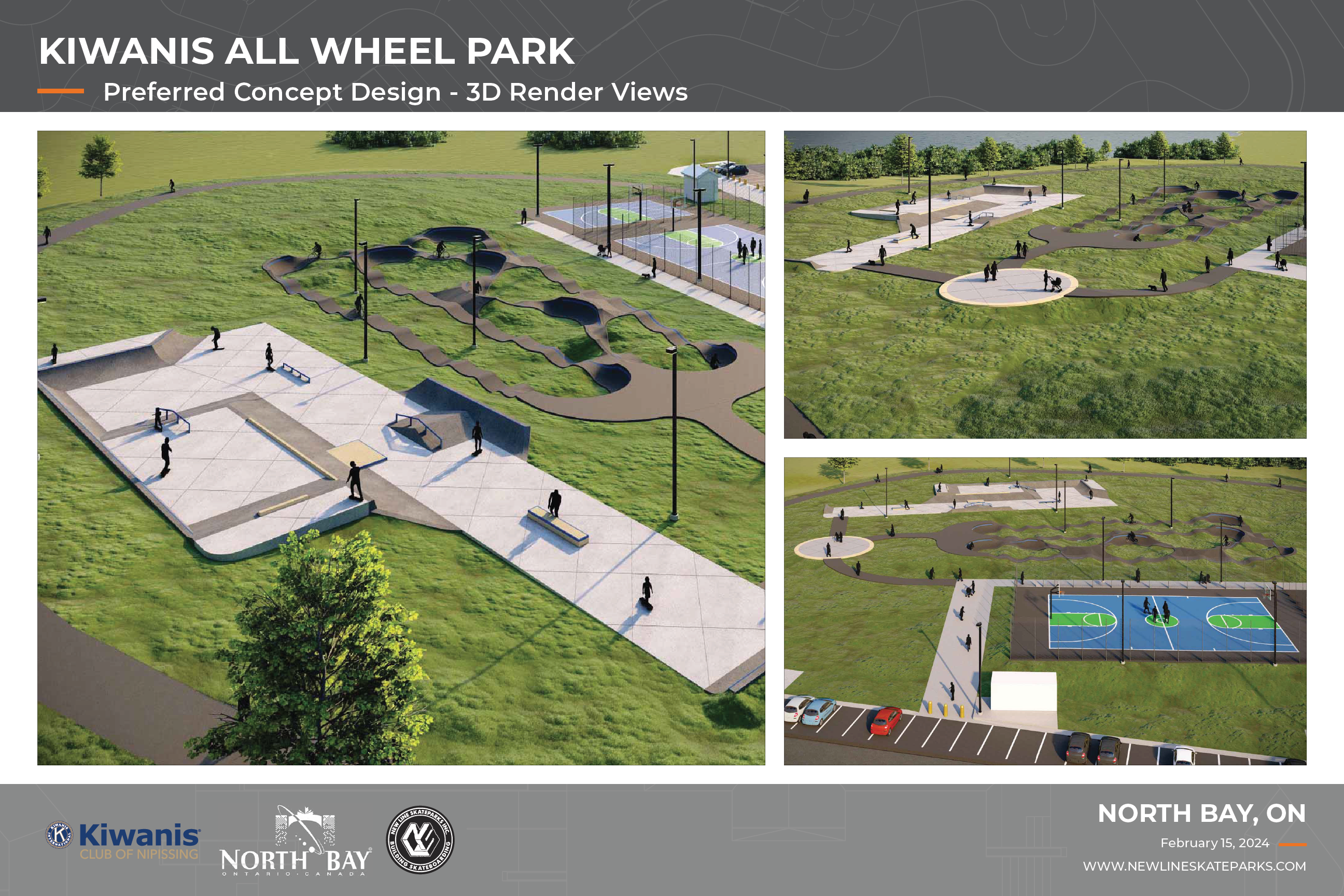 As part of this project, design work will focus on the large open space behind the North Bay Museum. The goal is to create a layout that fits well with nearby attractions, including the Family of Rotary Splash Pad and Playground, the North Bay and Dionne Quints Museums, Multi-Use Courts, and the Kiwanis All Wheel Park.