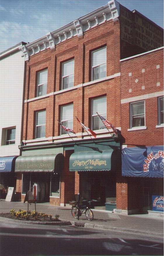 Originally owned by early North Bay merchant Bernard M. Mulligan as of 1921, this structure has housed offices and retail stores including the quality wool goods shop of the Mulligan family, until it was destroyed by fire in 2002. Unfortunately, the city was then deprived of a significant component of the early downtown core, which was also of historic value as a true representative of the style of early 20th century commercial development in this province.
