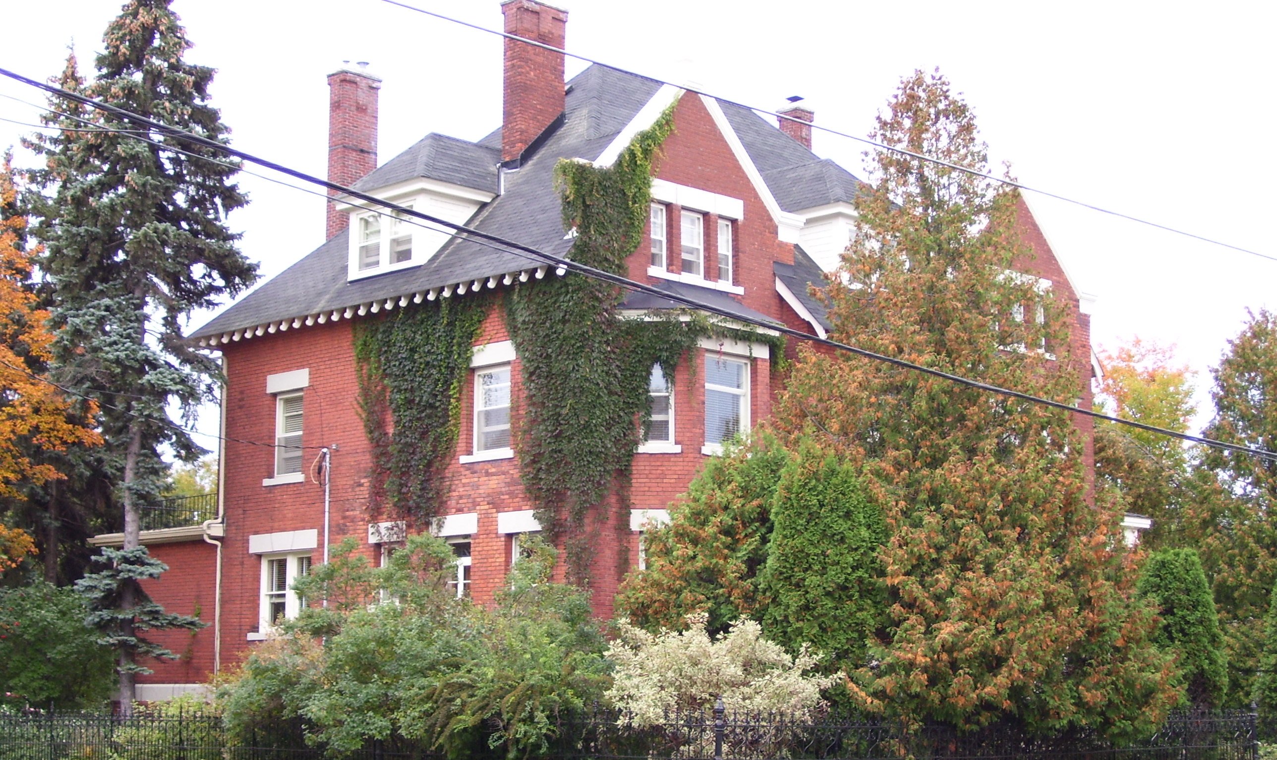 Characteristic of early 20th century Edwardian architecture, this house, built in 1911, with twin gables, a two story bay window, a hip roof with front and centre dormer, and with subtle modifications of the otherwise symmetrical design, creates interest without loss of balance. Originally, a porch protruded on the eastern side, together with a wrap-around westerly extension of the front porch, both of which were embellished with handsome wood balustrades at the ground and second floor levels.