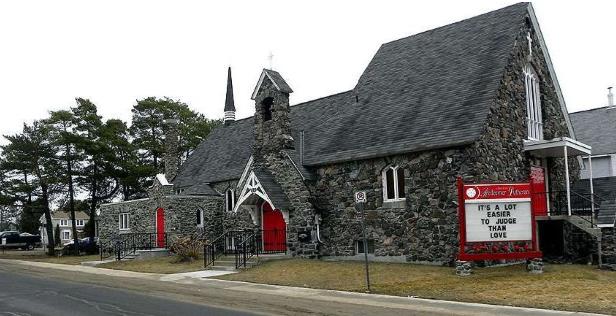Native granite rock on the exterior of the building gives the church a unique appearance. The stone was quarried as Highway 11 North (Thibeault Hill) was blasted. The stone was not cut into traditional bricks; rather, it was mortared in an unusual, asymmetrical and random fashion. The interior of the church is striking with whitewashed walls sitting in contrast to large, dark wooden beams. The pitch of the ceiling is dramatic, as in main churches, and several gothic arches lead the eye to the altar. This church still serves its original purpose more than eighty years later.