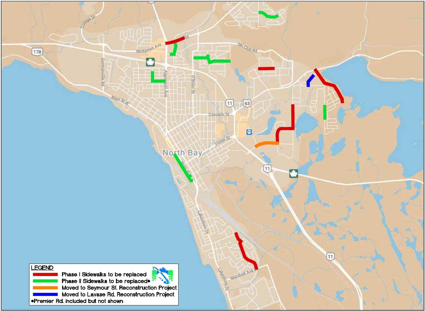 The City of North Bay has been successful in obtaining federal and provincial funding to complete the installation of sidewalks and stormwater improvements on numerous streets throughout the City. The funding was provided in two phases with Phase 1 sidewalk program under construction from 2021 - 2026 and Phase 2 sidewalk program starting in 2025 and will be complete in 2032.
