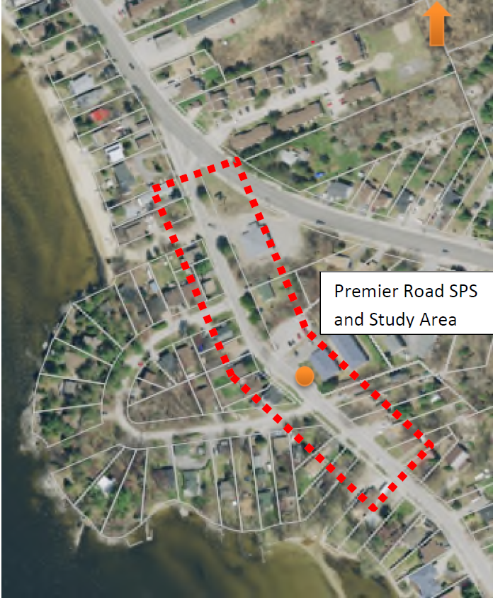 The Corporation of the City of North Bay has initiated a Municipal Class Environmental Assessment Study to evaluate the Premier Road Sewage Pumping Station and Forcemain (SPS) located in front of 904 Premier Road, on the east side of right-of-way across from the Hollywood Street intersection. The existing Premier Road SPS has reached the end of its useful life, with the wet well, dry well, generator housing and electrical control panel in an advanced stage of deterioration. Also, the pumps and wells are inadequately sized causing the pumps to run frequently, creating operational and maintenance problems. Additionally, there is a safety concern for vehicles colliding with the structure due to the close proximity to the edge of road within the narrow right of way.