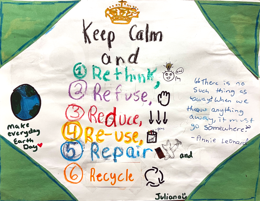 We’ll be featuring artwork weekly over the next couple of months as part of our Waste Diversion Outreach Program. The program provides elementary school students an opportunity to learn about the City's waste diversion initiatives in a creative and interactive way by utilizing the 6R's (Rethink, Refuse, Reduce, Reuse, Repair, and Recycle).