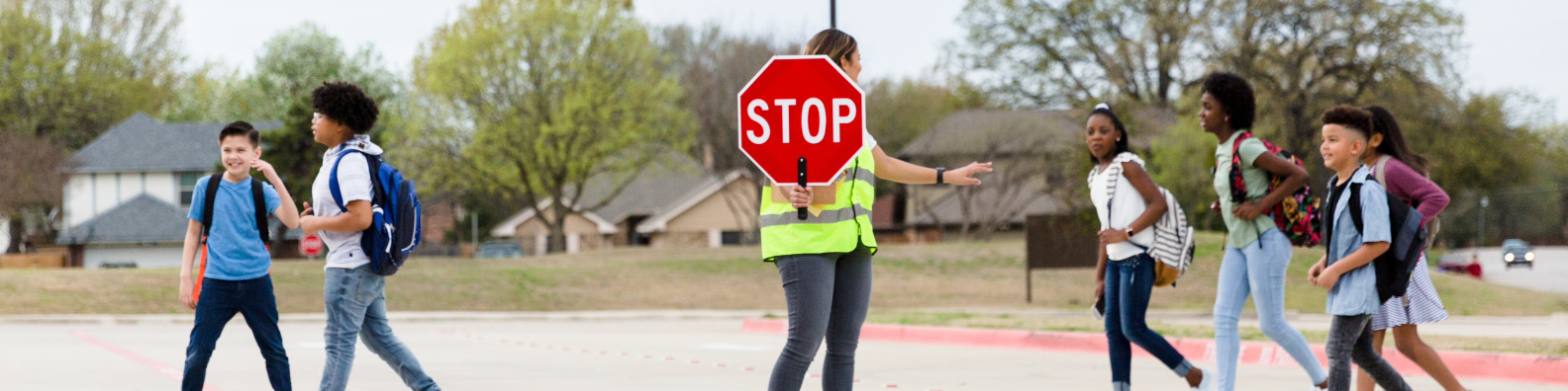 Where a school-crossing guard displays a red and white stop sign, you must stop before reaching the crossing and remain stopped until all pedestrians, including the school crossing guard, have cleared the entire roadway and it is safe to proceed.