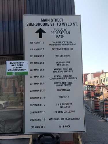 There is also a dedicated construction office at 168 Main St. East which will be there throughout the duration of the project, walk-ins are welcome. While the office may not be unlocked at all times of the day, a sign is posted on the door and includes the contact information for the Contractor's Liaison. The Contractor's Liaison will be working out of this office and will also be available to answer questions and assist business owners and citizens.