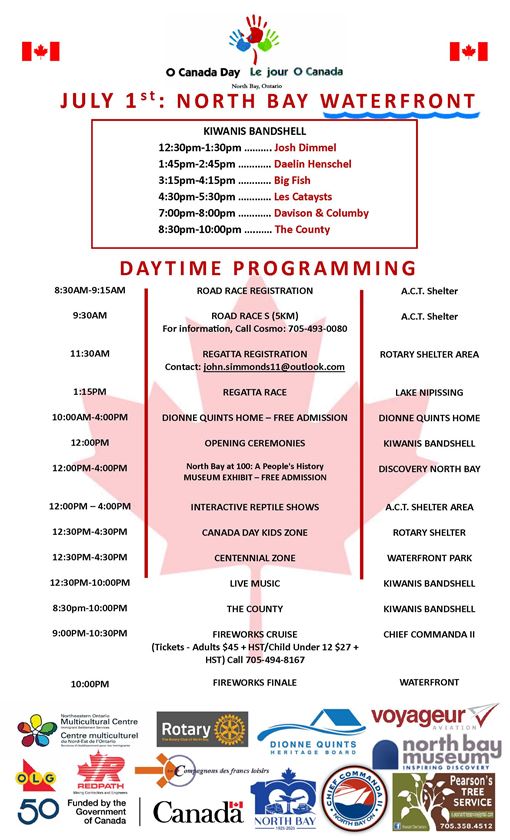 The City of North Bay recognizes that Canada Day holds different meaning for each of us and that it is not a day of celebration for everyone. With this in mind, we would encourage everyone, whether you are celebrating or taking time to reflect, to learn more about all aspects of our country’s history and its relationship with Indigenous peoples. There are a number of resources available online for those who would like to learn more.