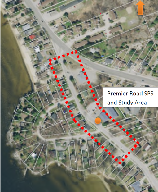 The Corporation of the City of North Bay has initiated a Municipal Class Environmental Assessment Study to evaluate the Premier Road Sewage Pumping Station and Forcemain (SPS) located in front of 904 Premier Road, on the east side of right-of-way across from the Hollywood Street intersection. The existing Premier Road SPS has reached the end of its useful life, with the wet well, dry well, generator housing and electrical control panel in an advanced stage of deterioration. Also, the pumps and wells are inadequately sized causing the pumps to run frequently, creating operational and maintenance problems. Additionally, there is a safety concern for vehicles colliding with the structure due to the close proximity to the edge of road within the narrow right of way.